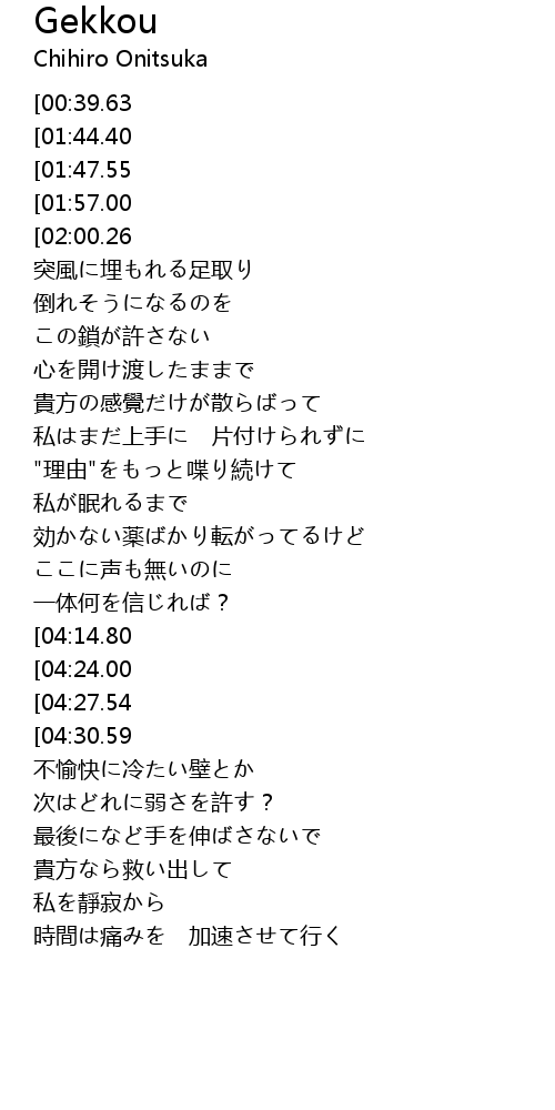 | [02:13.99] | "理由"をもっと喋り続けて |