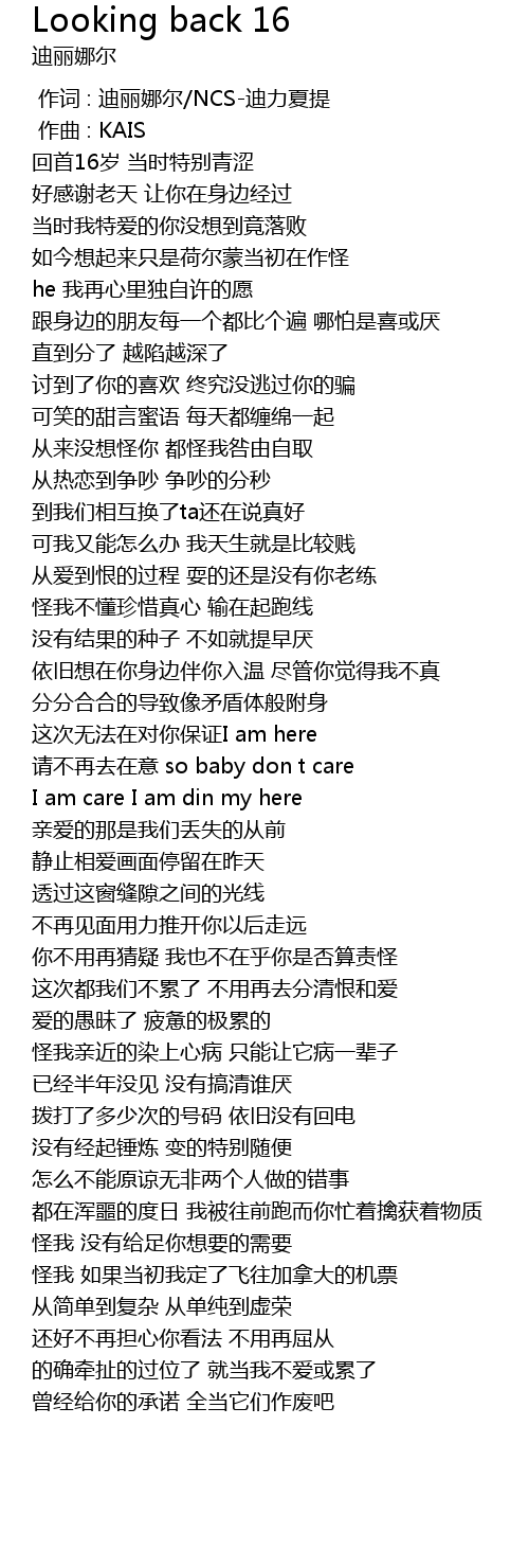 | [00:20.07] | 回首16岁 当时特别青涩 |