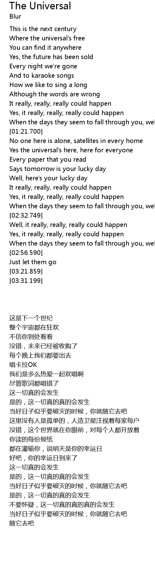 | [01:46.520] | Yes the universal' s here, here for everyone |