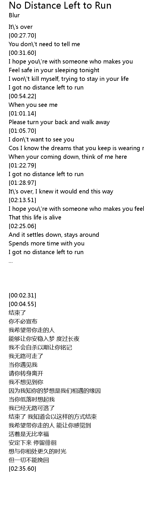 I got no distance left to run |