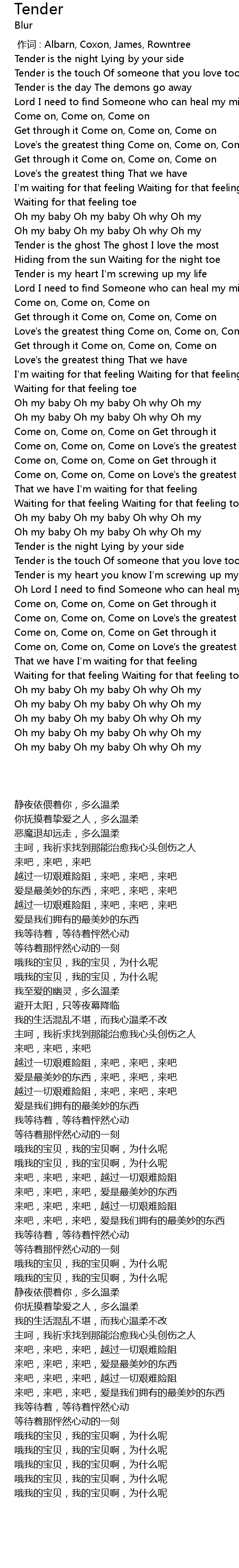 | [00:00.00] | zuò cí : Albarn, Coxon, James, Rowntree |