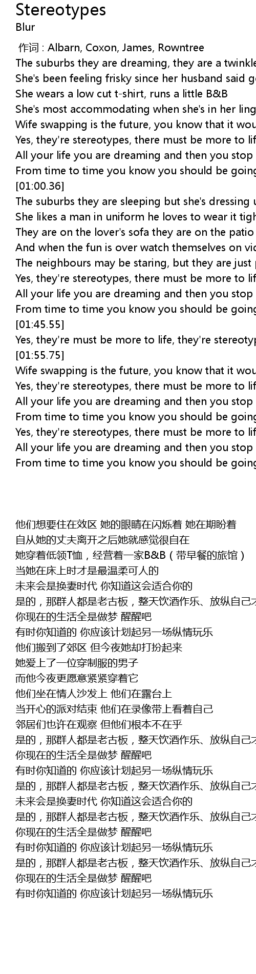 | [02:25.00] | Yes, they' re stereotypes, there must be more to life |