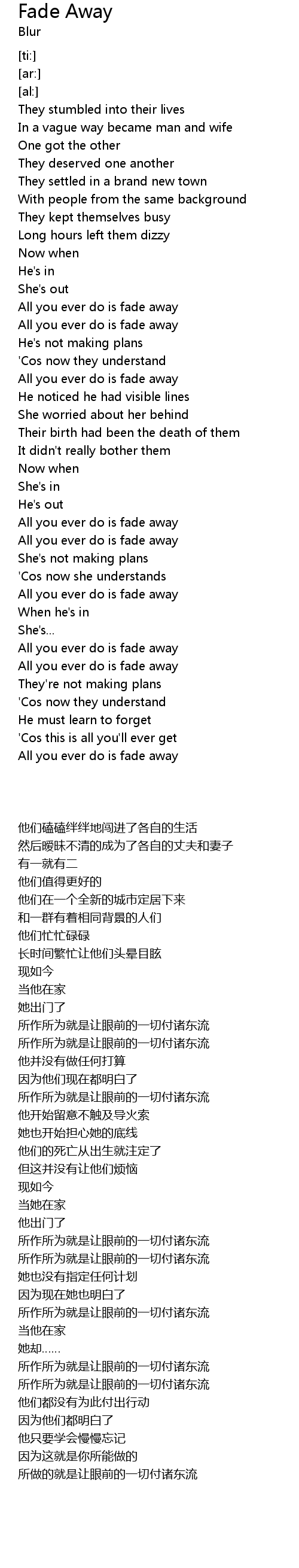 All you ever do is fade away |