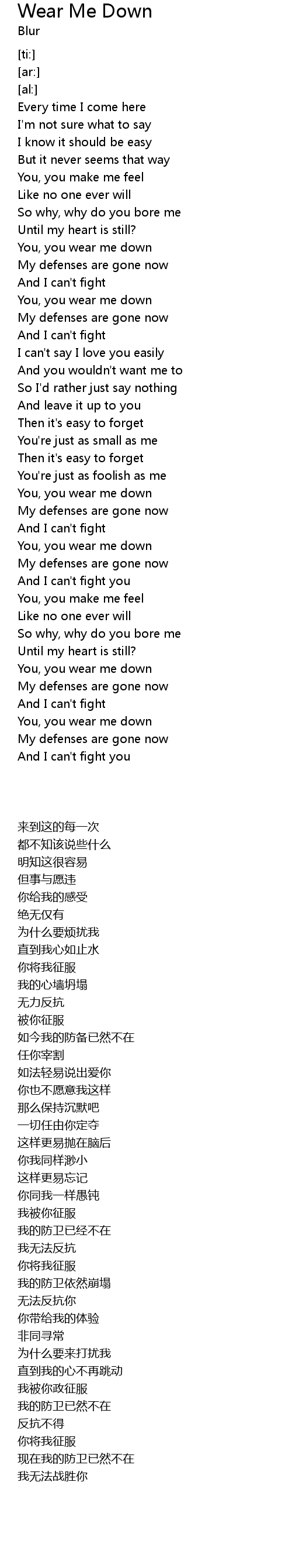 You, you wear me down |