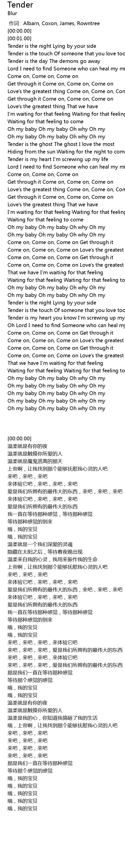 | [00:00.00] | zuo ci : Albarn, Coxon, James, Rowntree |