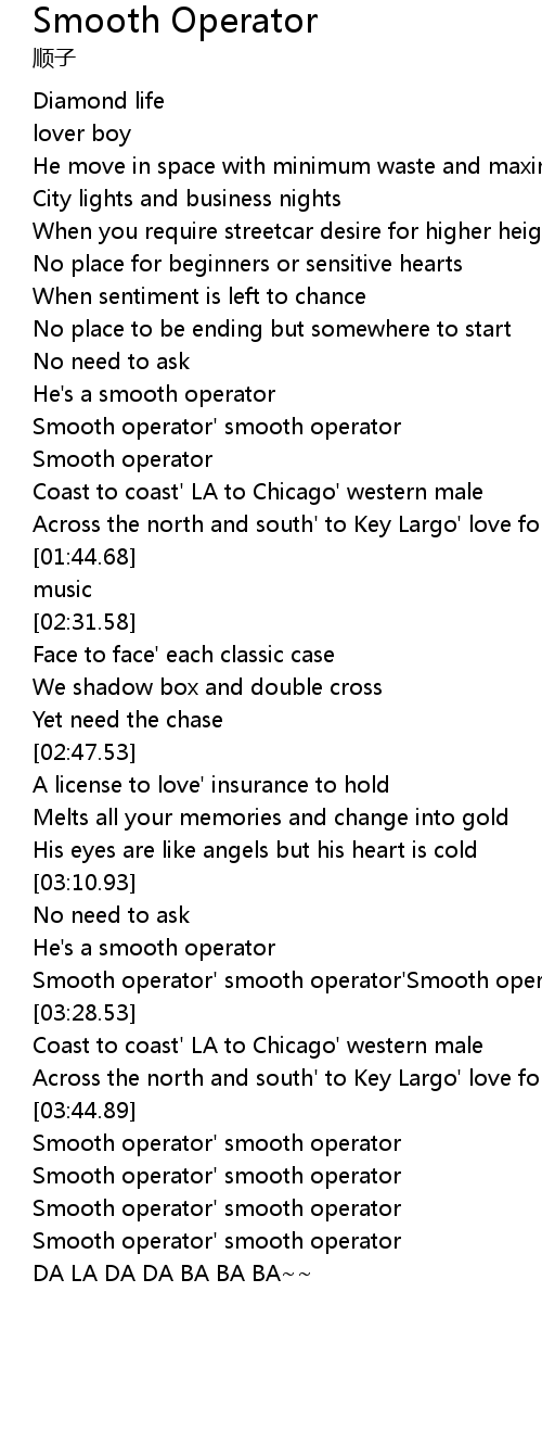 | [03:17.03] | Smooth operator' smooth operator'Smooth operator |
