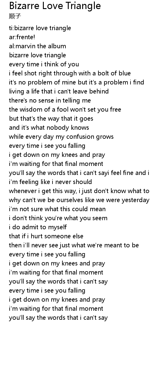 | [00:00.12]ti:bizarre love triangle] | |
