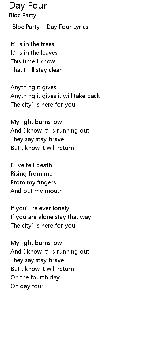 | Bloc Party Day Four Lyrics | |