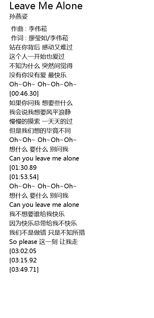 | [03:11.31][03:02.05] | Can you leave me alone |