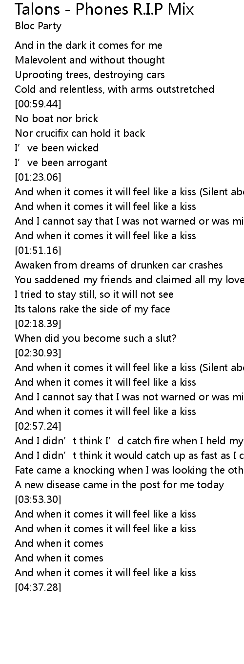 | [04:18.26] | And when it comes it will feel like a kiss |
