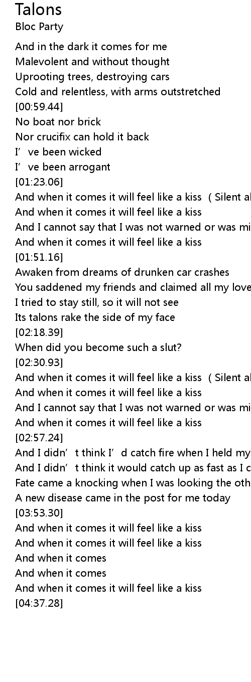 | [04:18.26] | And when it comes it will feel like a kiss |