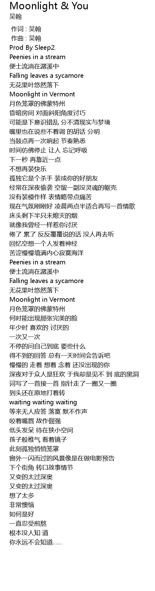| [00:18.279] | Moonlight in Vermont |