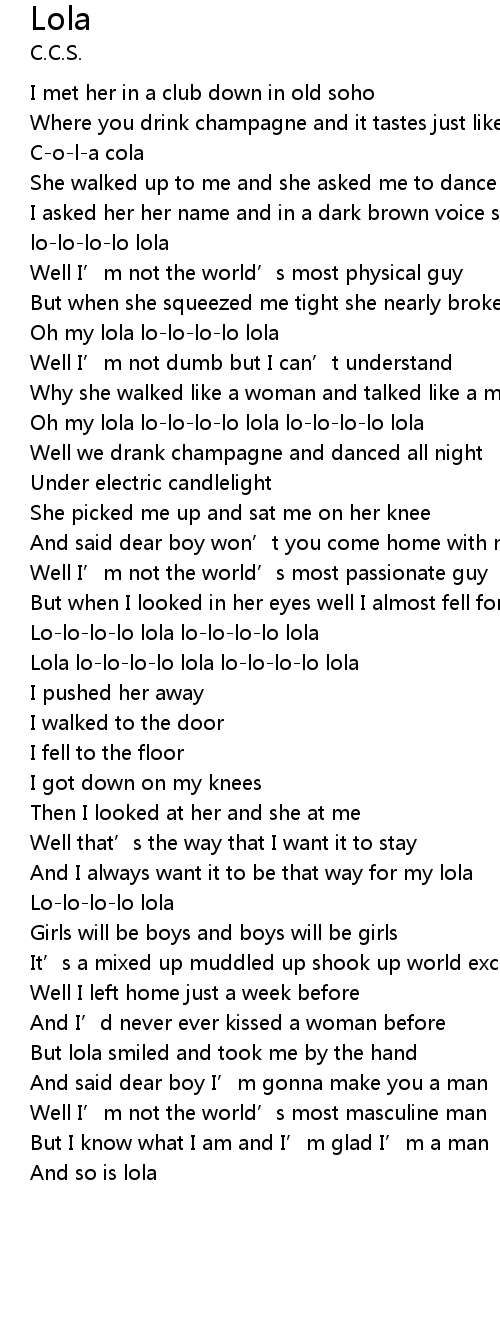 | Lola lo-lo-lo-lo lola lo-lo-lo-lo lola | |