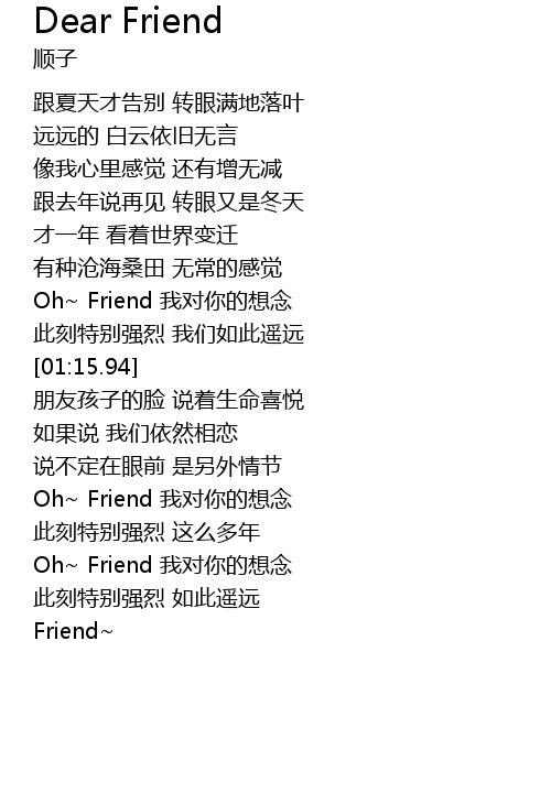 | [01:59.47] | Oh Friend wo dui ni de xiang nian |