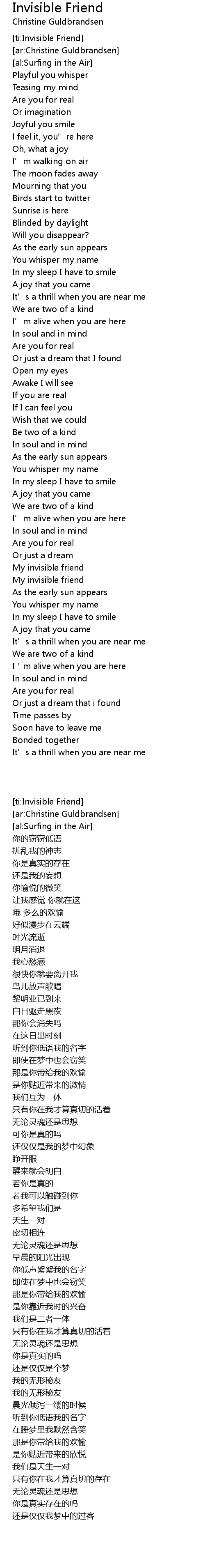 | [ti:Invisible Friend] | |