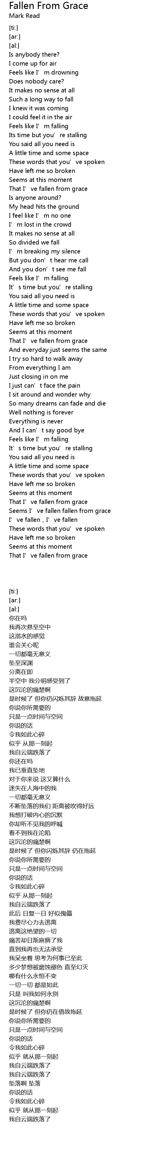 | [02:57.59] | Seems I’ve fallen fallen from grace |