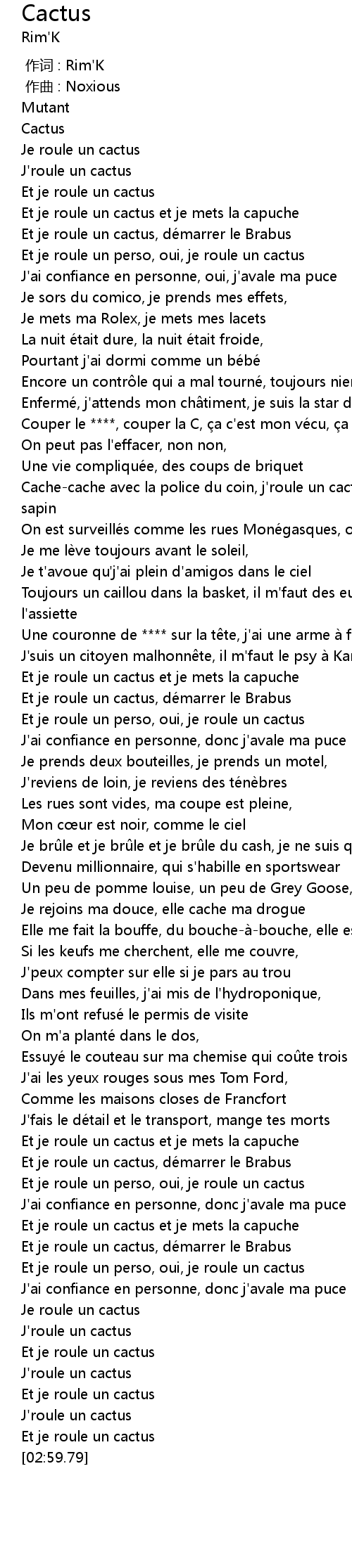 | [02:51.53] | J'roule un cactus |