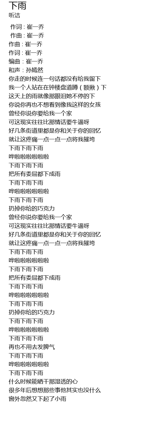 | [01:59.888] | xià yǔ xià yǔ xià yǔ |