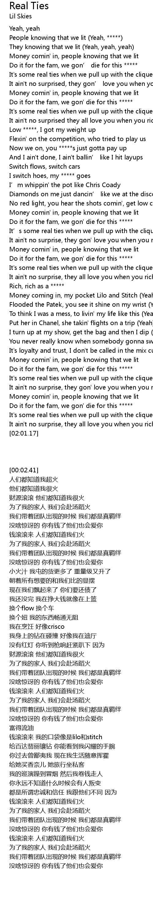 | [01:41.80] | Do it for the fam, we gon' die for this ***** |