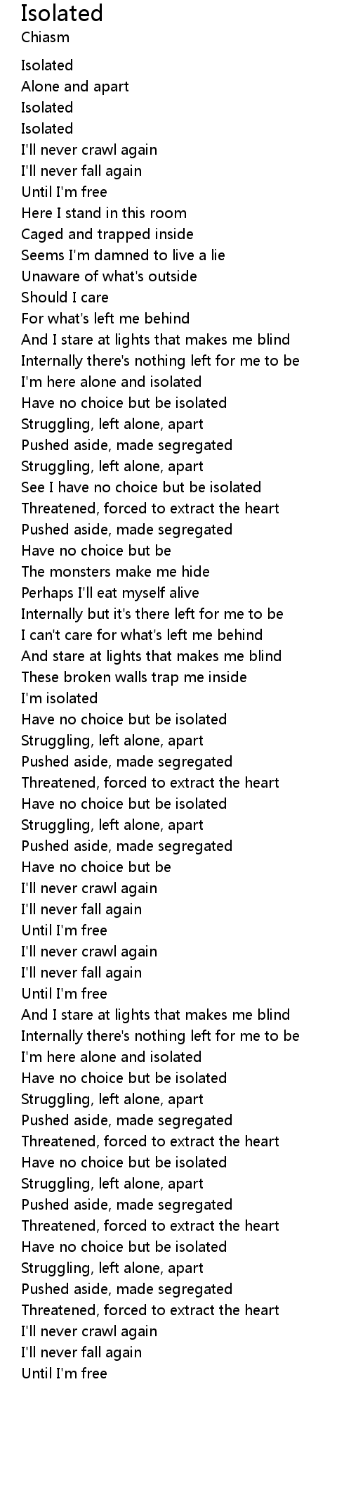 | See I have no choice but be isolated | |