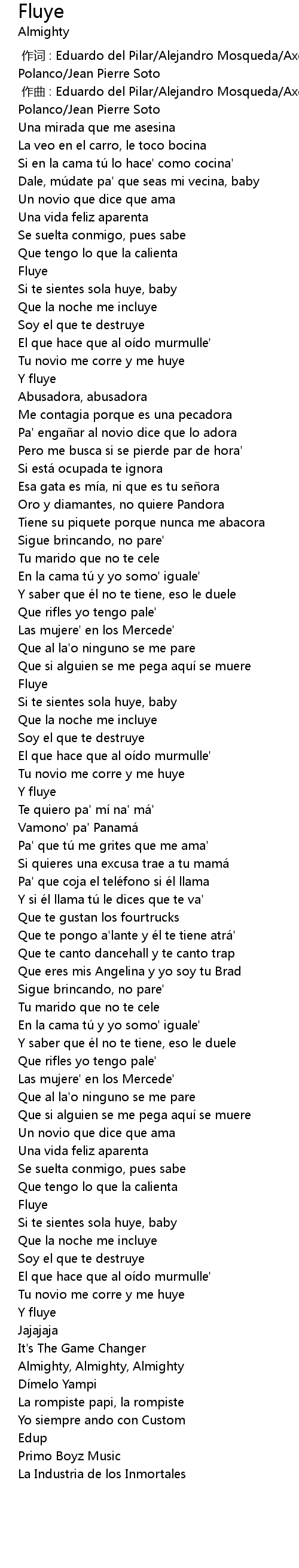 | [00:00.000] | 作词 : Eduardo del Pilar/Alejandro Mosqueda/Axel Colon Nieves/Jose Polanco/Jean Pierre Soto |
