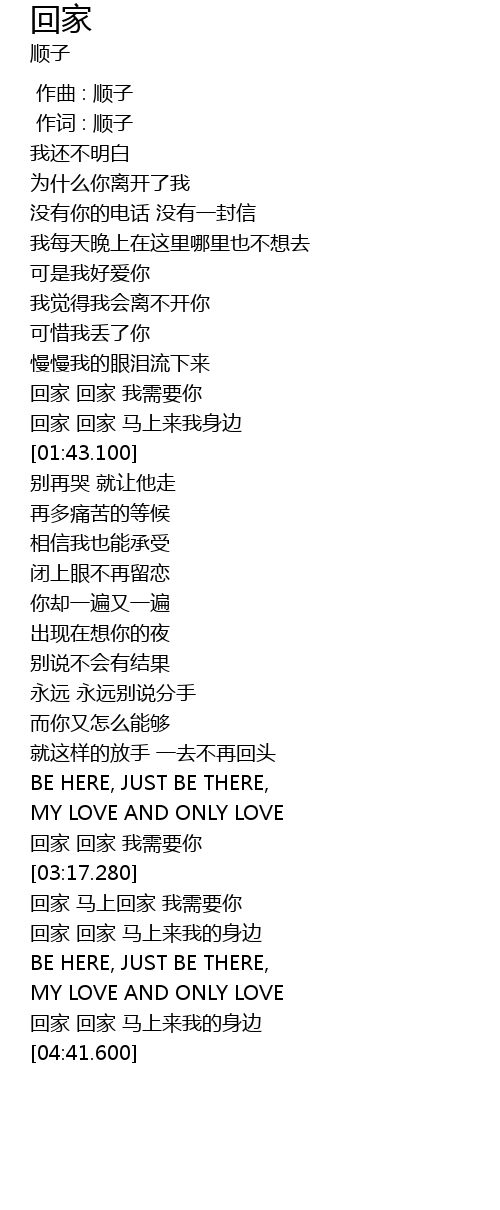 | [03:39.600] | 回家 马上回家 我需要你 |