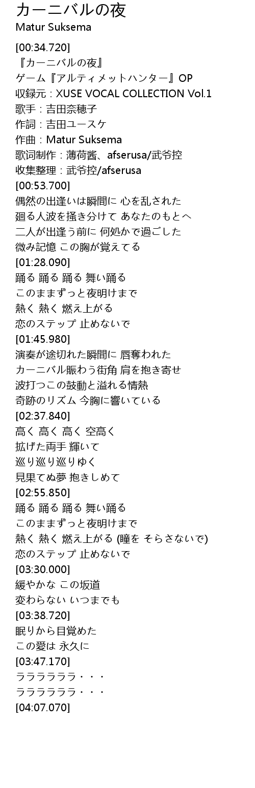 | [00:41.200] | 収録元:XUSE VOCAL COLLECTION Vol.1 |