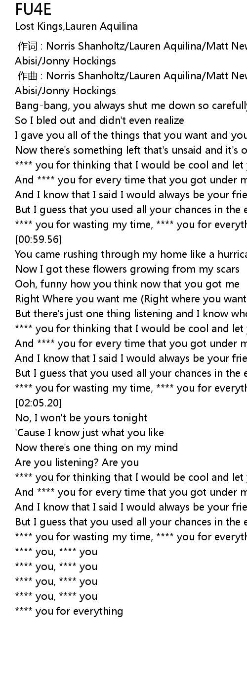 | [00:52.55] | **** you for wasting my time, **** you for everything |
