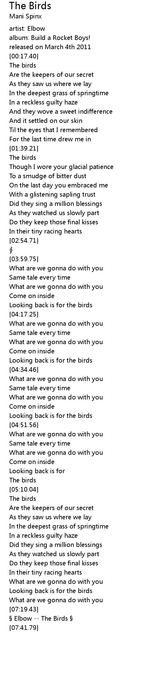 | [01:42.20] | The birds |