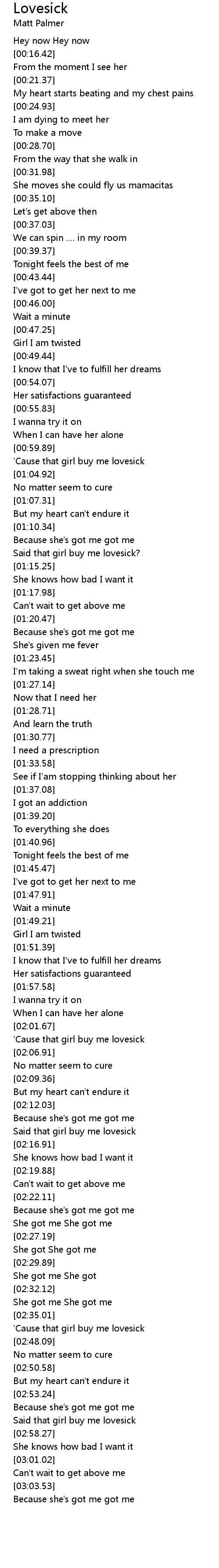 Said that girl buy me lovesick |
