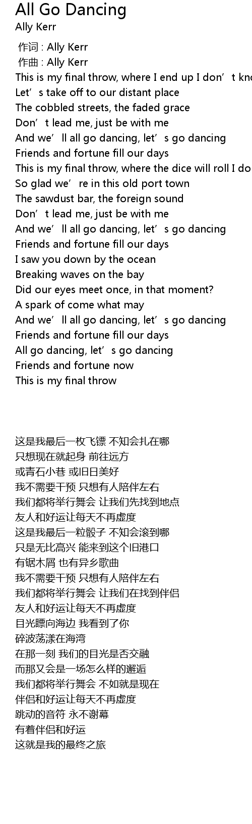 | [00:22.069] | And we' ll all go dancing, let' s go dancing |