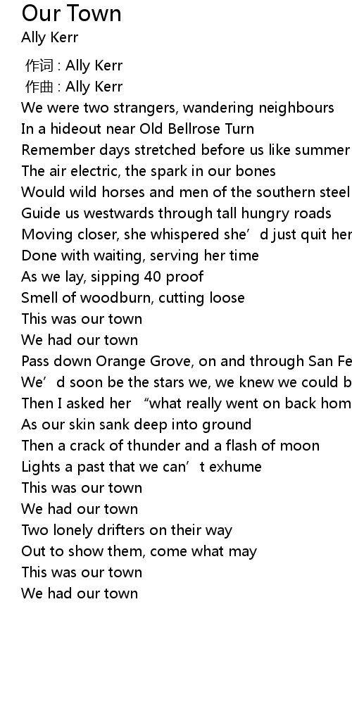 | [00:00.000] | We were two strangers, wandering neighbours |