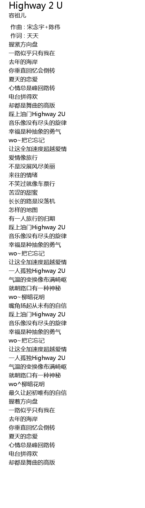 | [02:35.380] | cǎi shàng yóu mén Highway 2U |