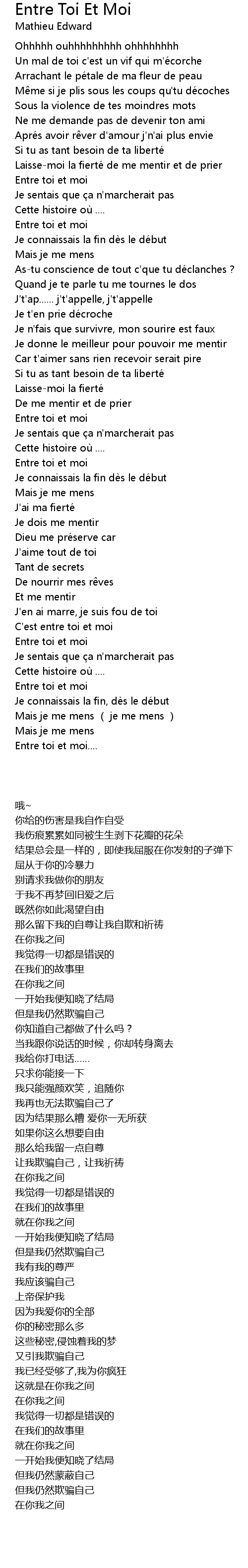 | [01:35.580] | Je donne le meilleur pour pouvoir me mentir |