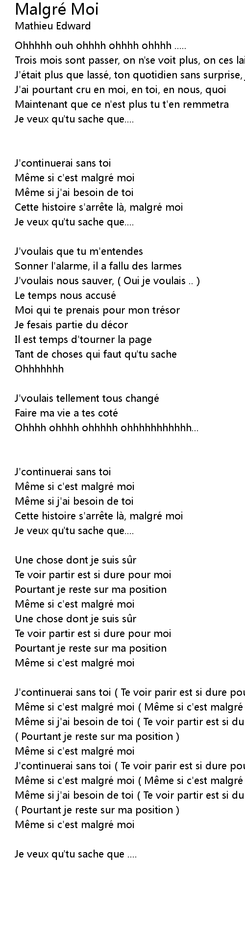 | M me si c' est malgré moi M me si c' est malgré moi | |