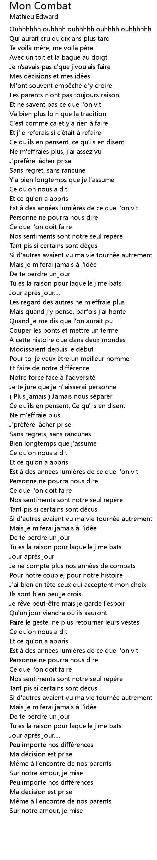 | 歌曲 | Mon Combat |