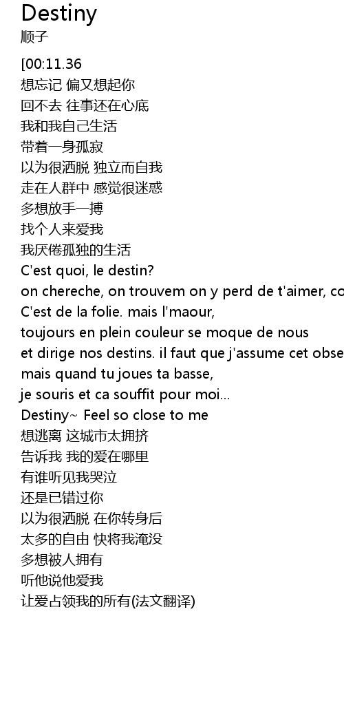 | [00:06.60][00:11.36] | Destiny Feel so close to me |