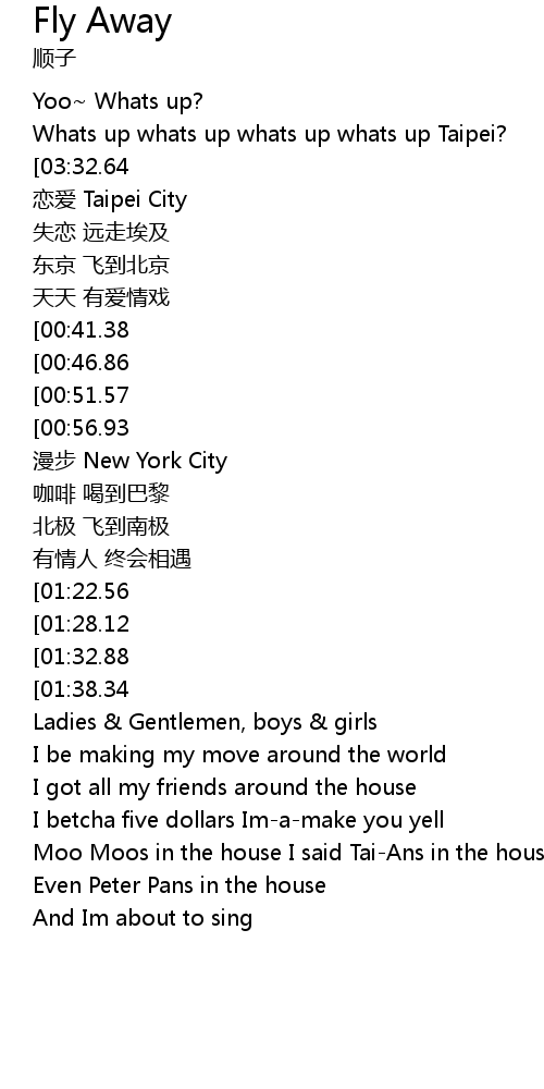 | [00:05.95] | Whats up whats up whats up whats up Taipei? |
