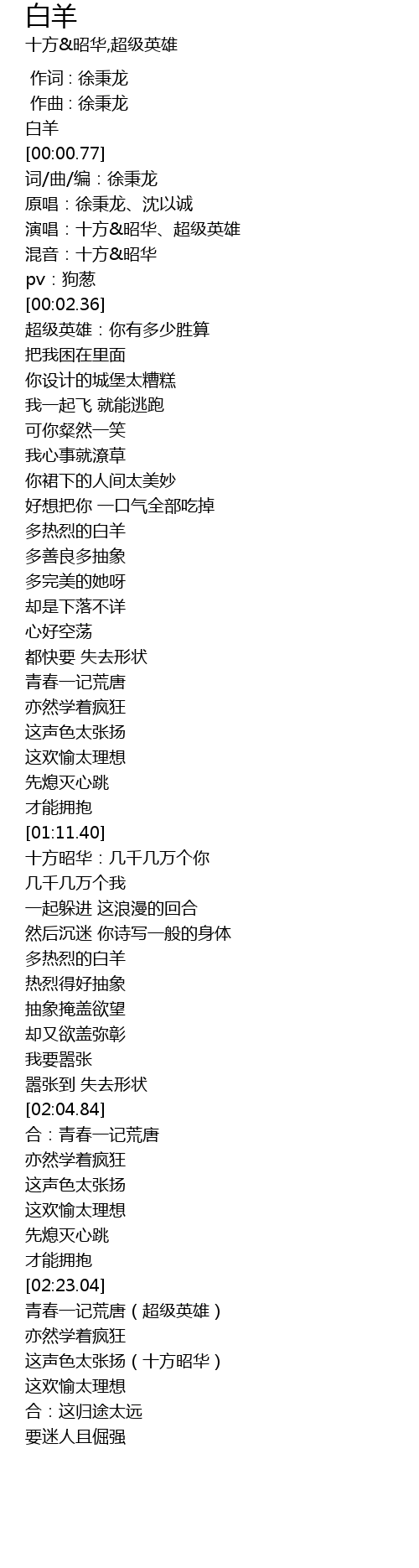 | [00:01.25] | 演唱:十方&昭华、超级英雄 |