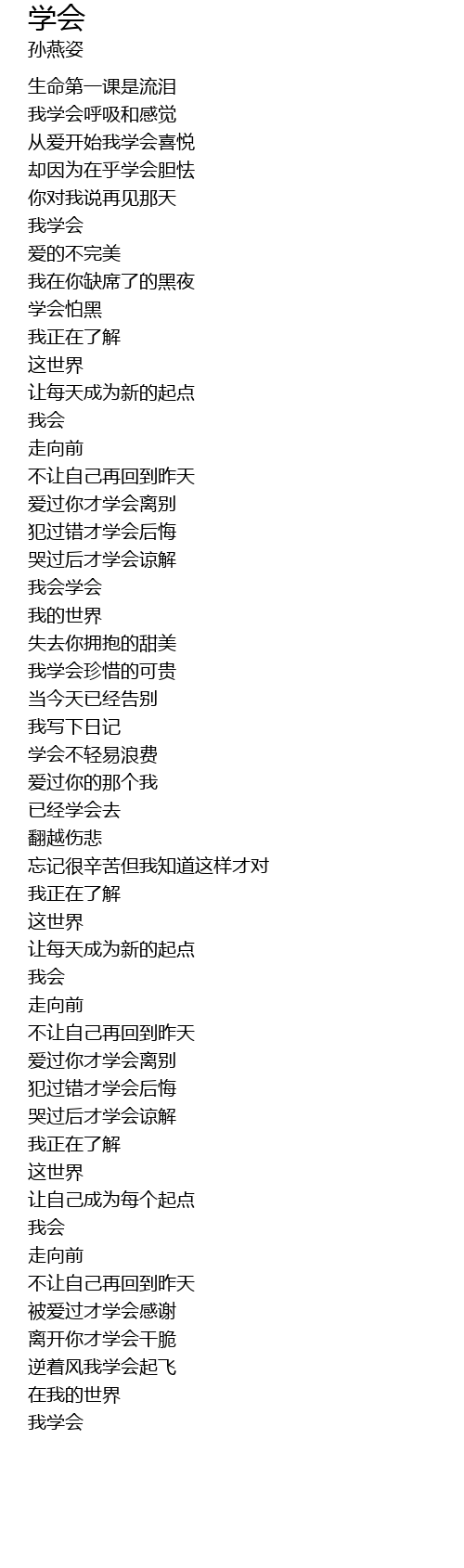 | [01:35.950] | 我会学会 |
