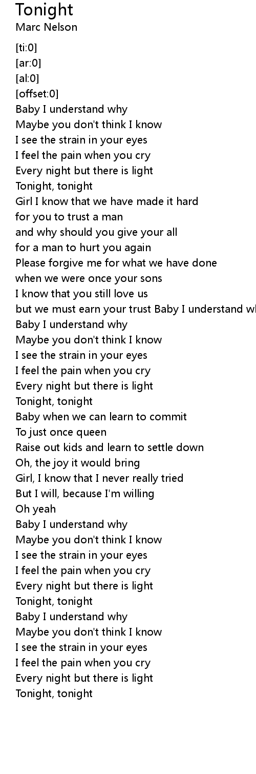 Tonight, tonight |