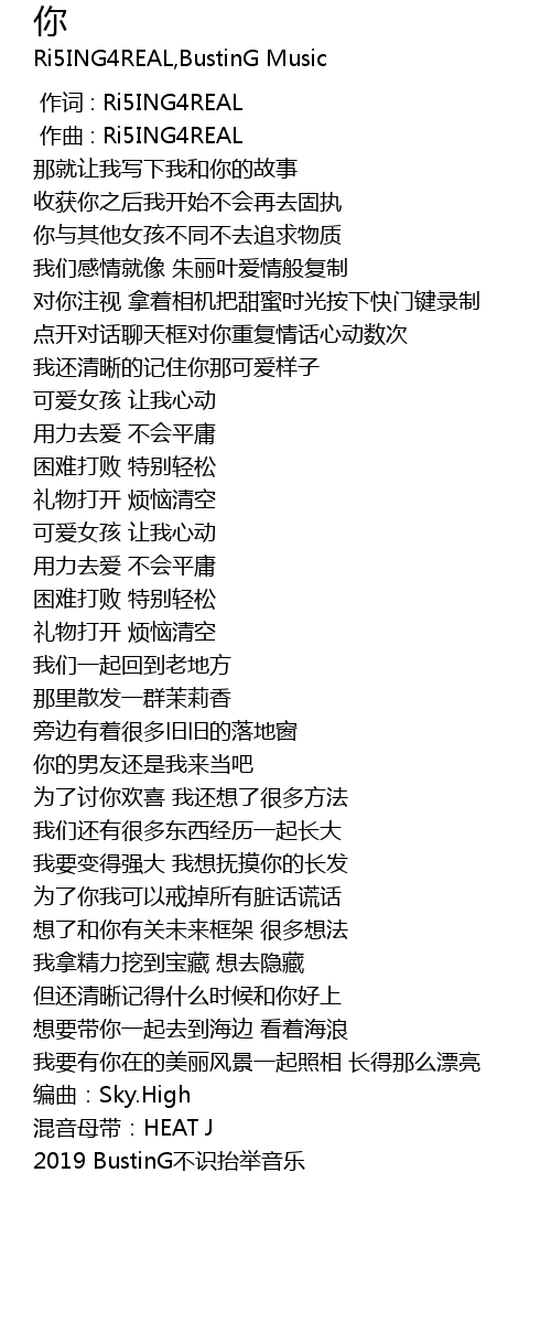 | [00:00.000] | 作词 : Ri5ING4REAL |