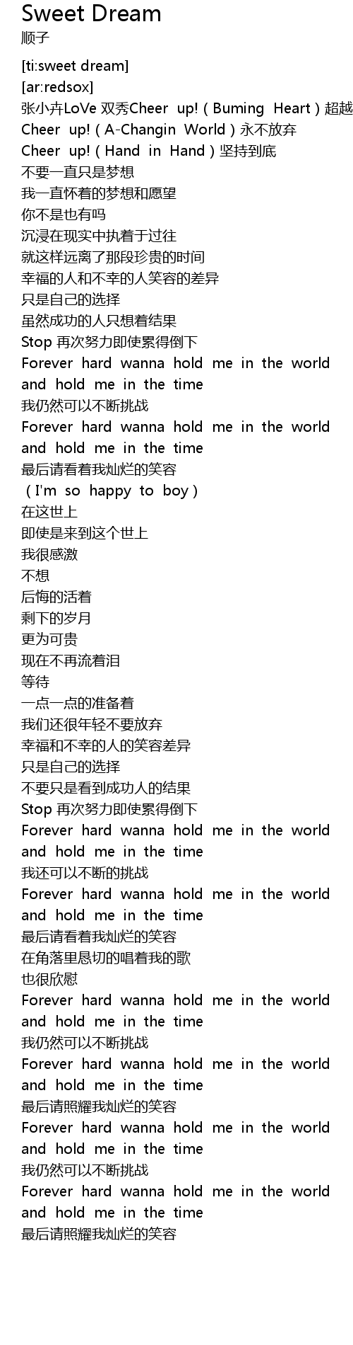 | [00:03.367] | 张小卉LoVe 双秀Cheer up!(Buming Heart)超越自己 |