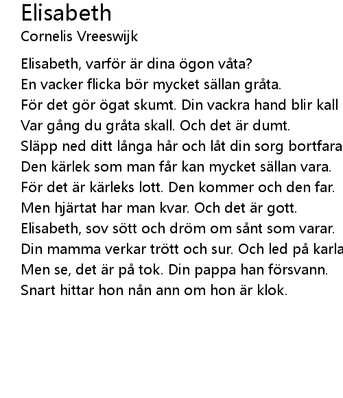 | Elisabeth, sov s tt och dr m om s nt som varar. | |