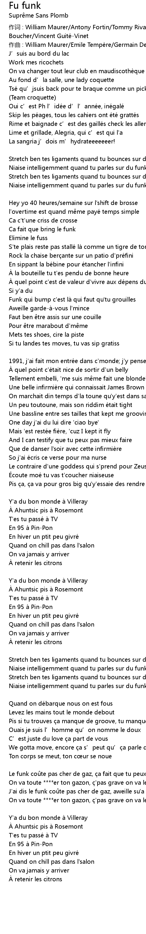 | J'ai dis le funk coûte pas cher de gaz, aweille su'a pompe mononc!' | |