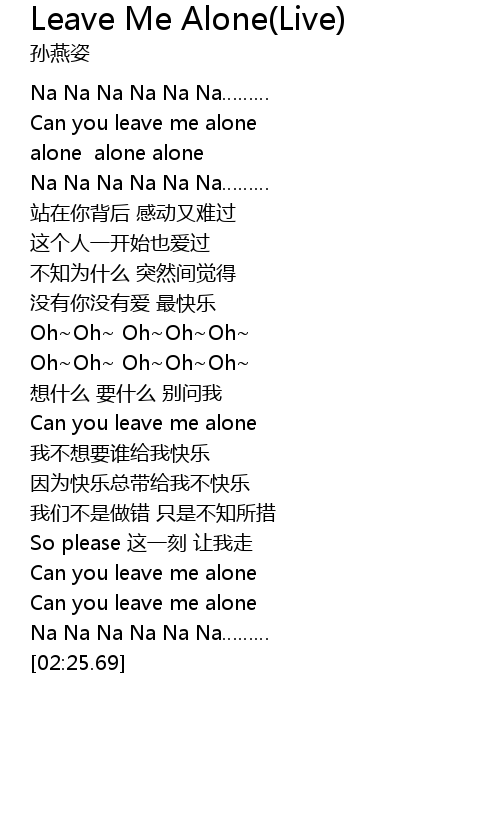 | [00:25.32] | Can you leave me alone |