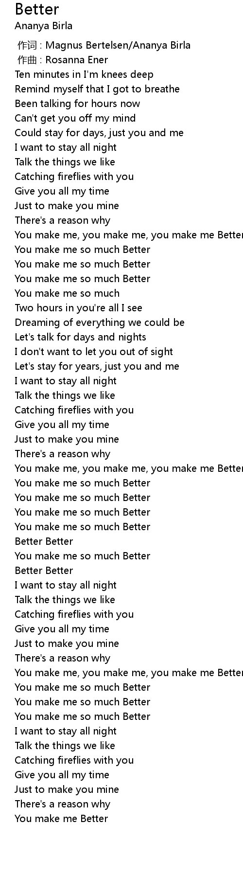 | [00:36.46] | You make me, you make me, you make me Better |