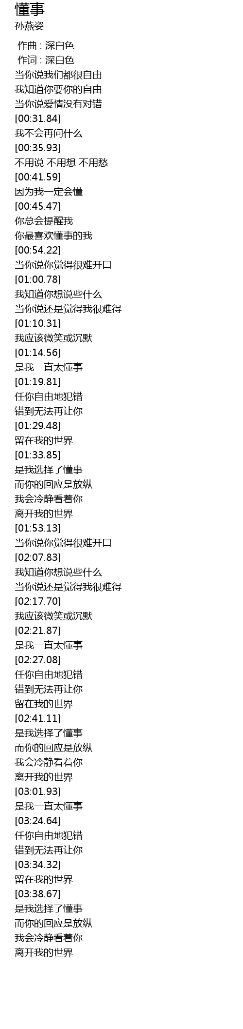 | [02:22.83] | 是我一直太懂事 |