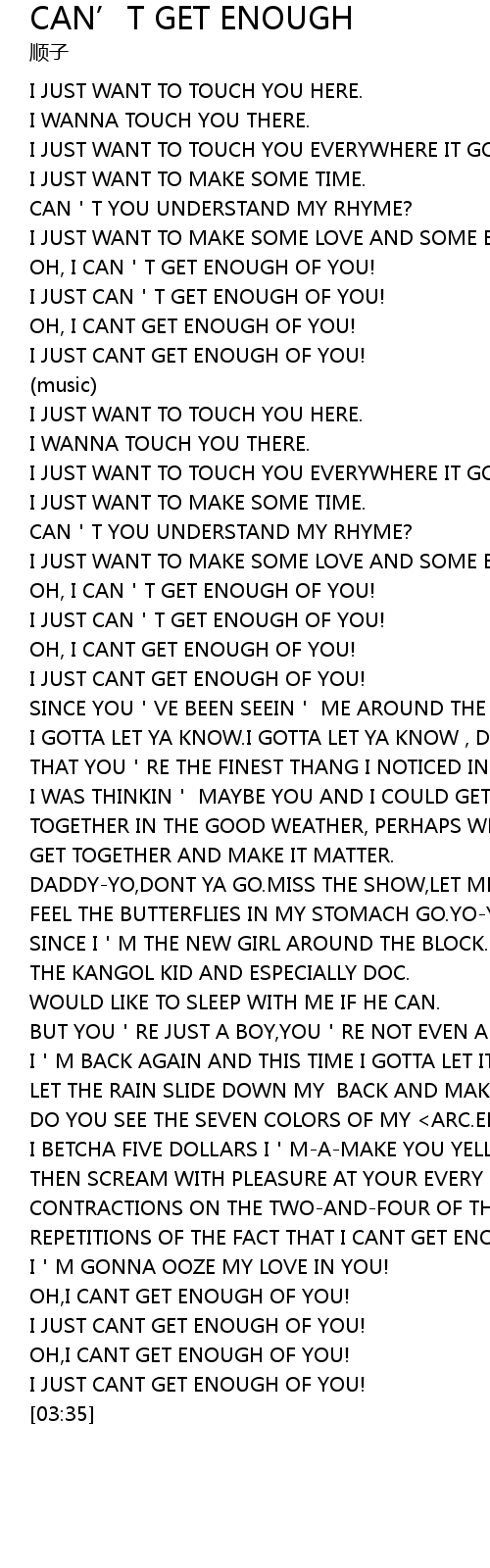 | [02:57] | REPETITIONS OF THE FACT THAT I CANT GET ENOUGH. |