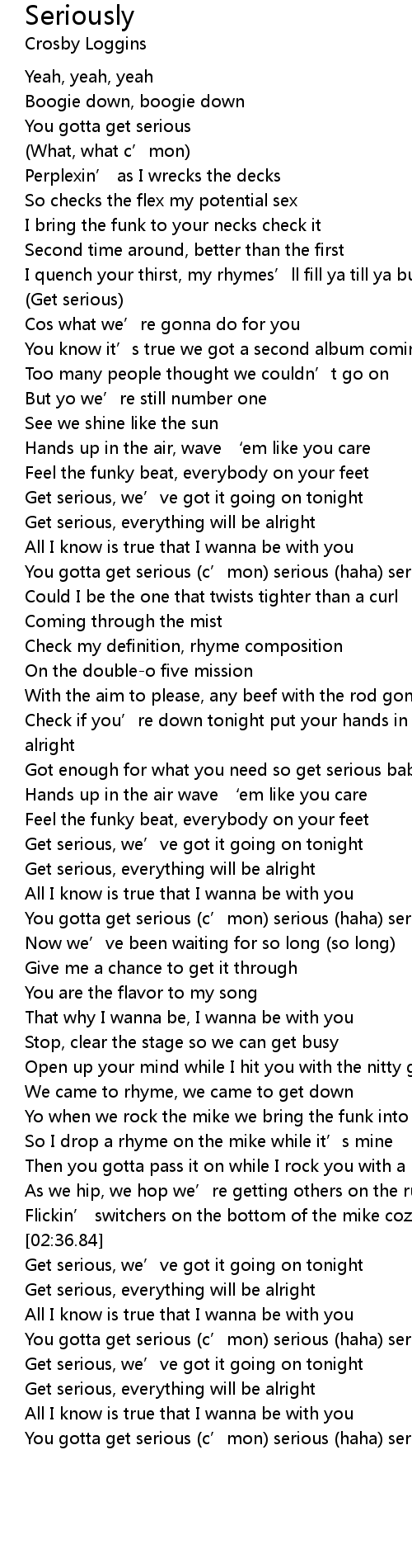 | [02:55.68] | You gotta get serious (c’mon) serious (haha) serious |